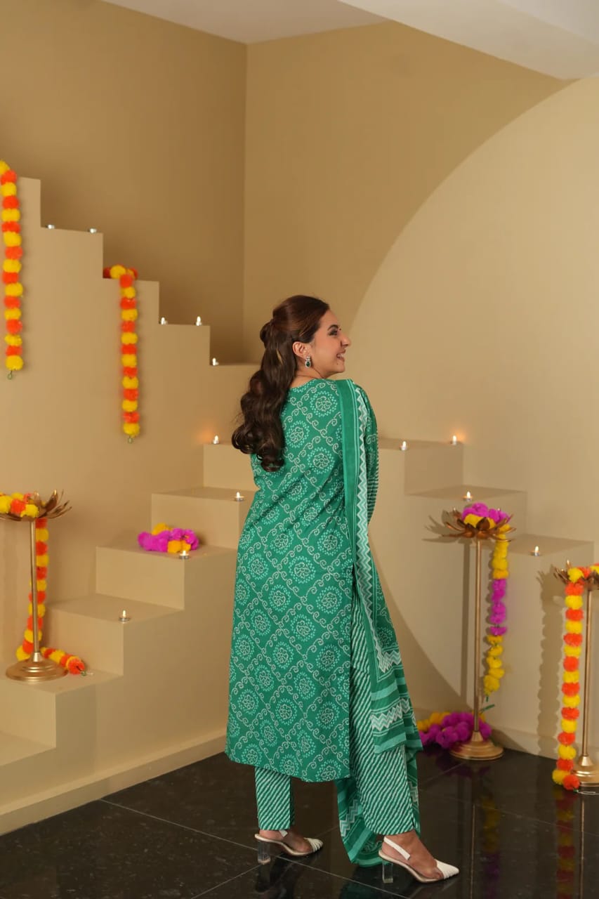 Step into effortless elegance with this Emerald Grace Kurta Bottom Dupatta Set, crafted from soft and breathable Rayon Slub fabric. Featuring a timeless printed design, comfortable straight pants, and a lightweight flowing dupatta, this set is perfect for daily wear, office wear, and festive occasions.