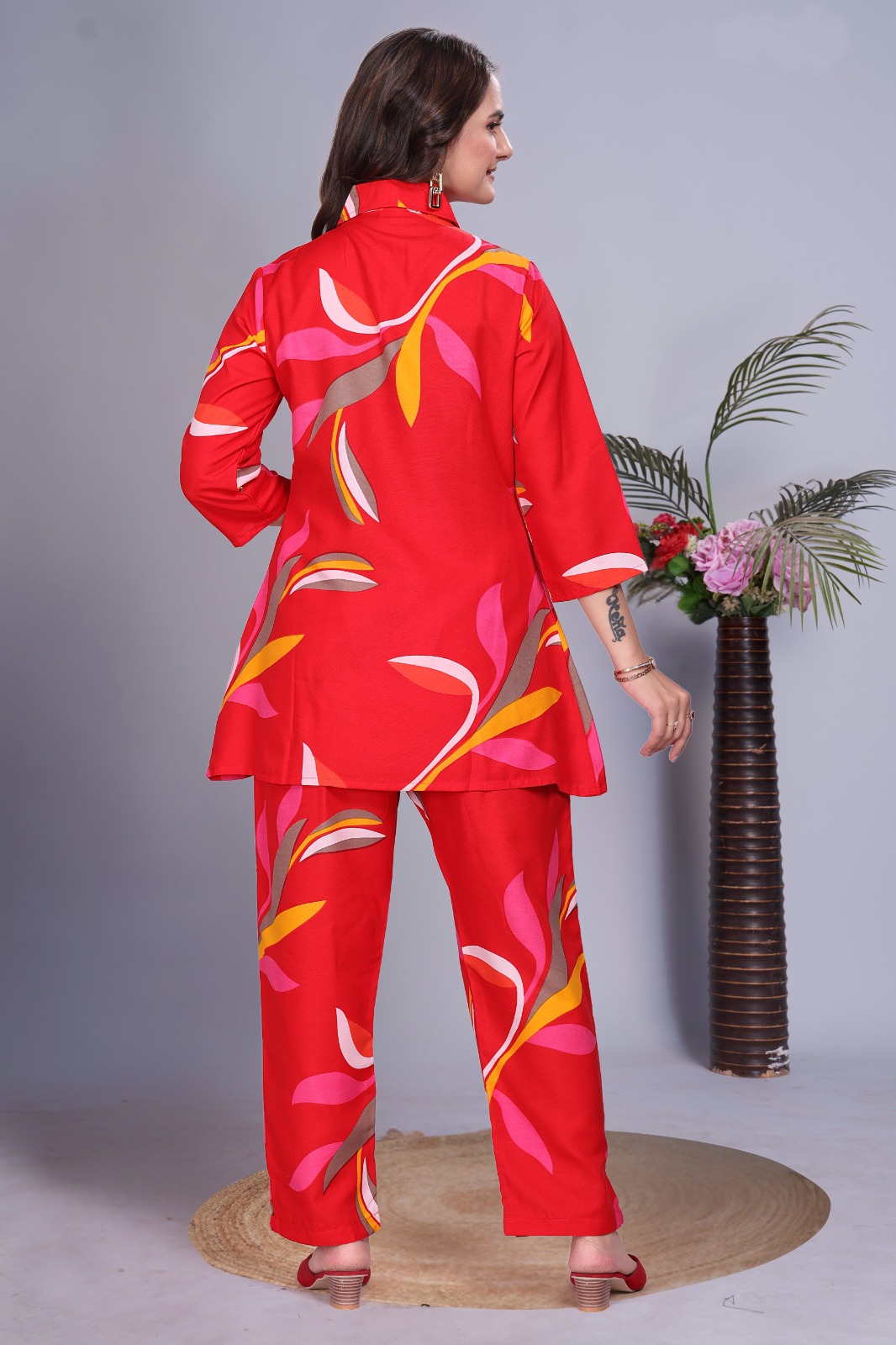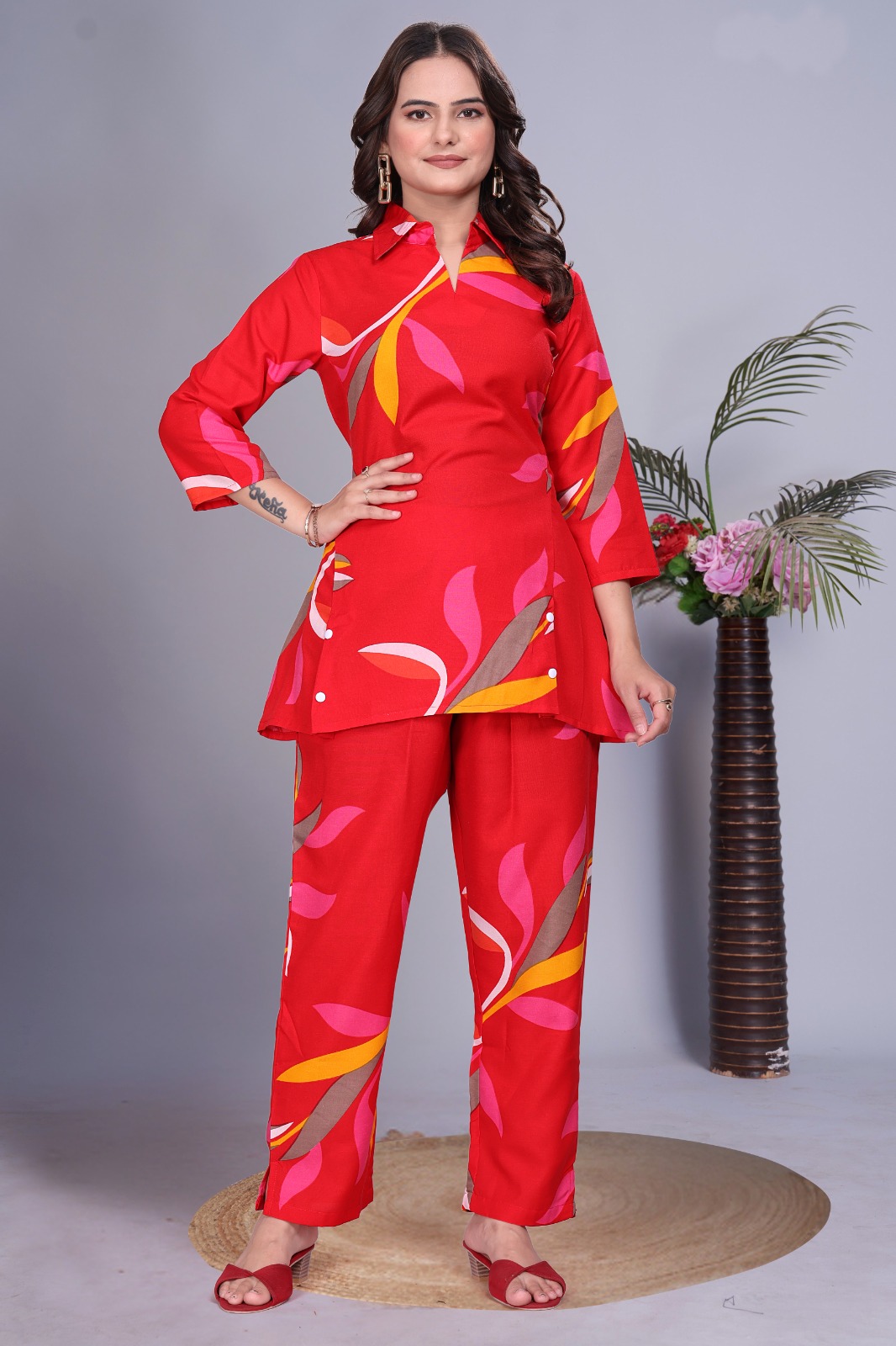 Stylish Magic Slub print co-ord set with matching top and bottom, designed for a comfortable and trendy fit.