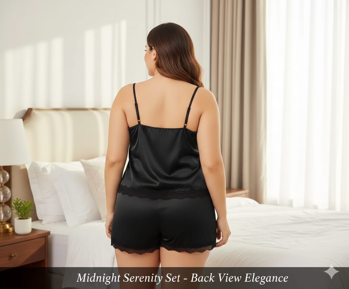Experience luxury and comfort with the Midnight Serenity Satin Intimate Wear Set. Designed to bring elegance and confidence to your nighttime wardrobe, this stunning two-piece set features a silky satin cami top paired with matching shorts.