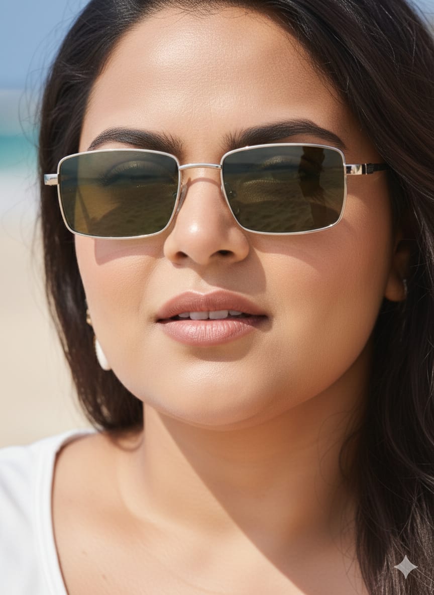 Premium metal frame sunglasses crafted with a sleek silver finish and deep green tinted lenses. Lightweight yet durable, these sunglasses offer a refined, modern look with all-day comfort—perfect for elevated everyday style.
