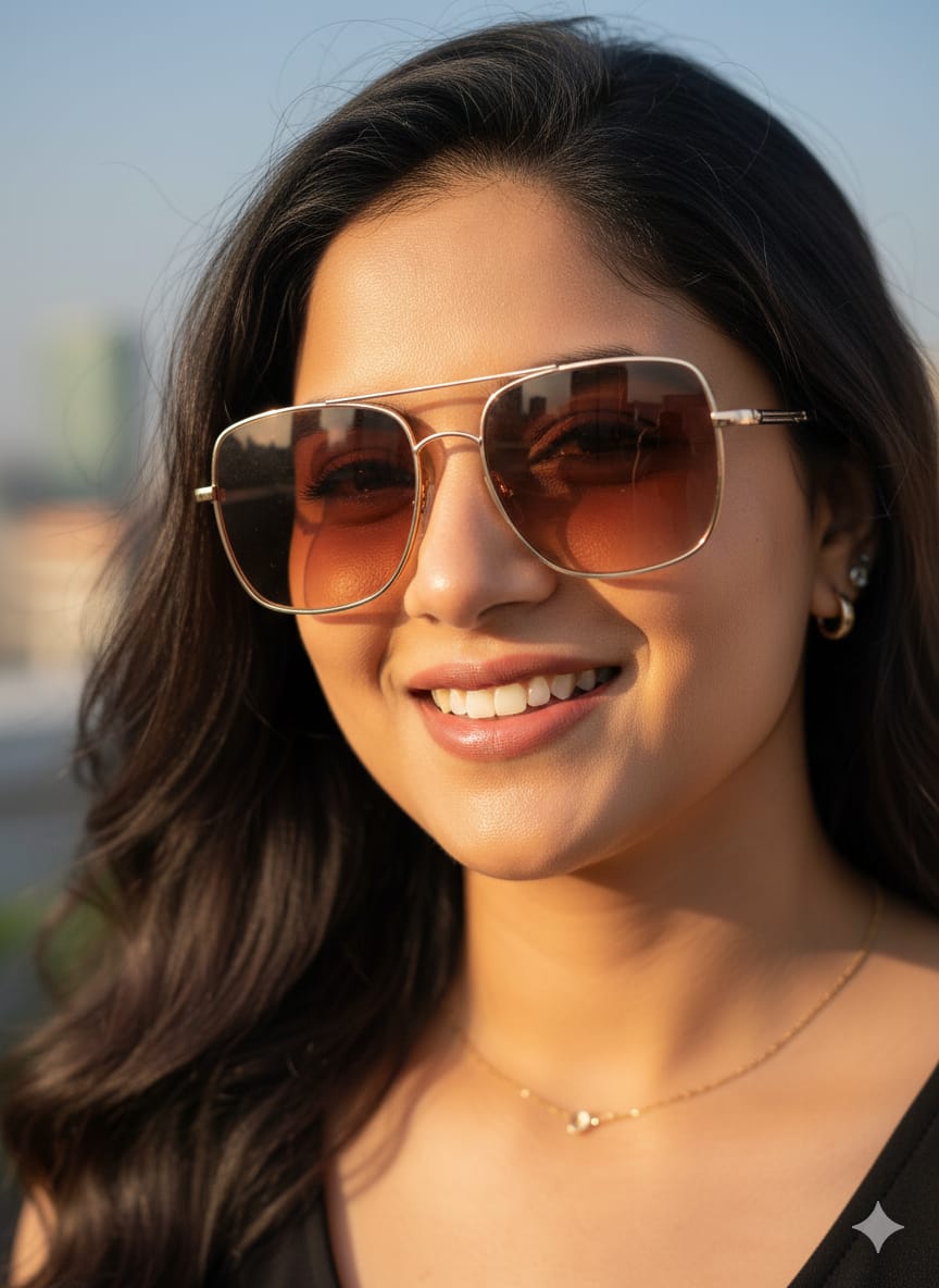 Premium Metal Frame Sunglasses – Square Sunglasses – Amber Brown