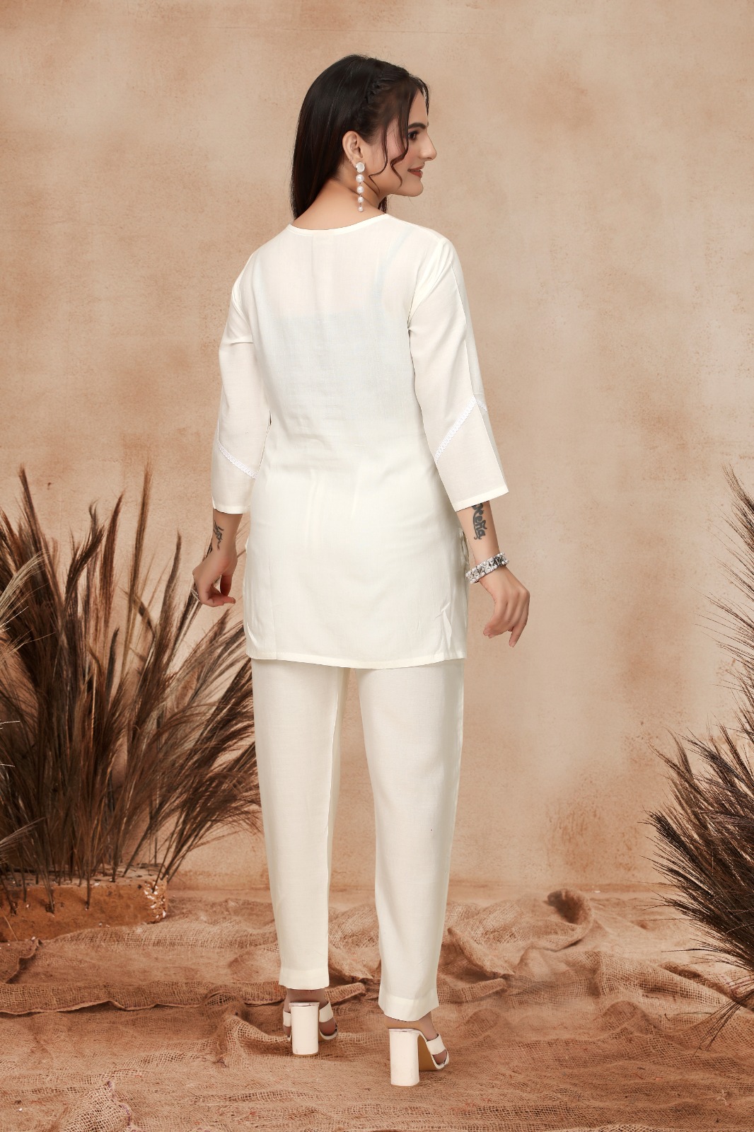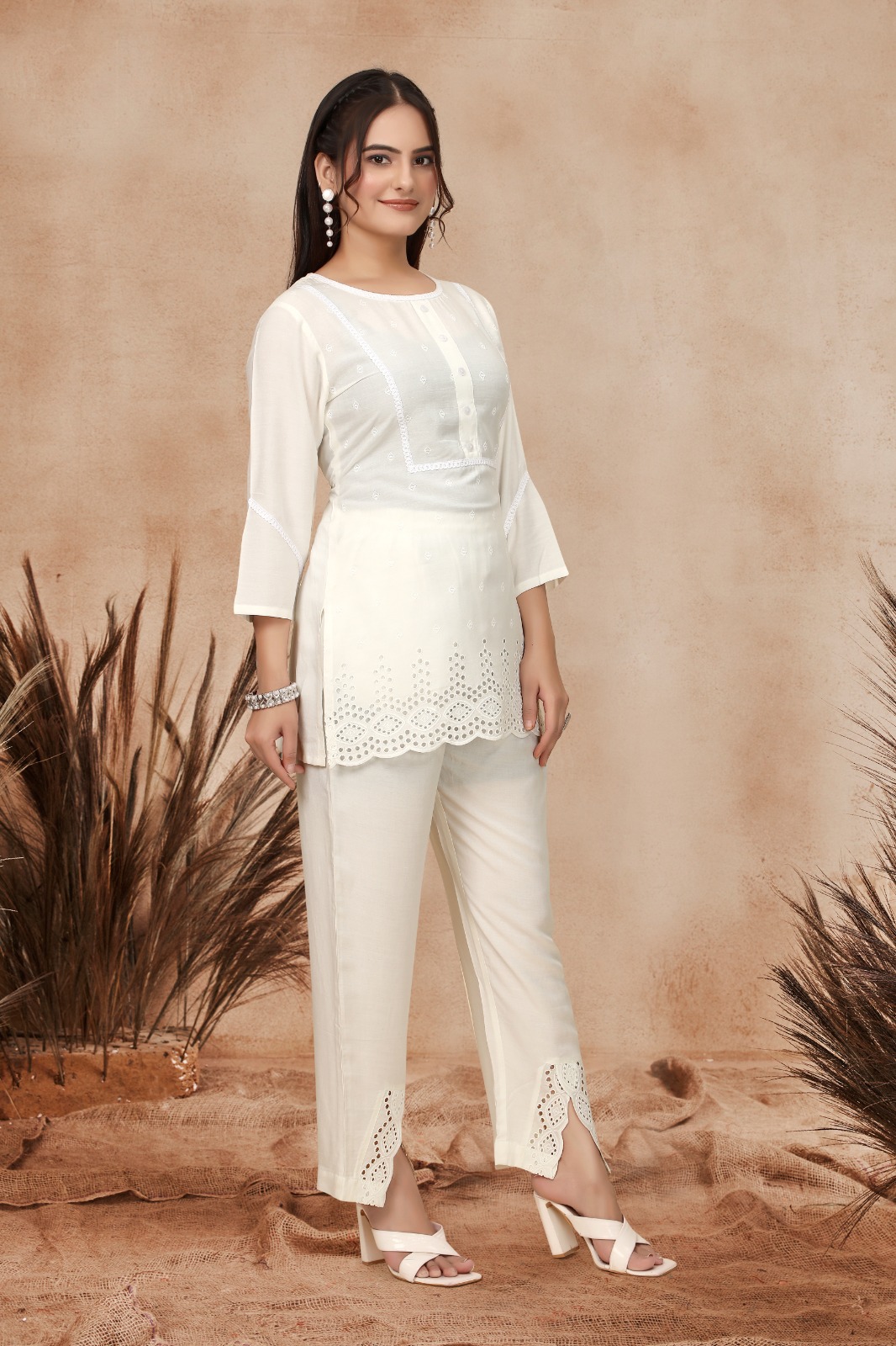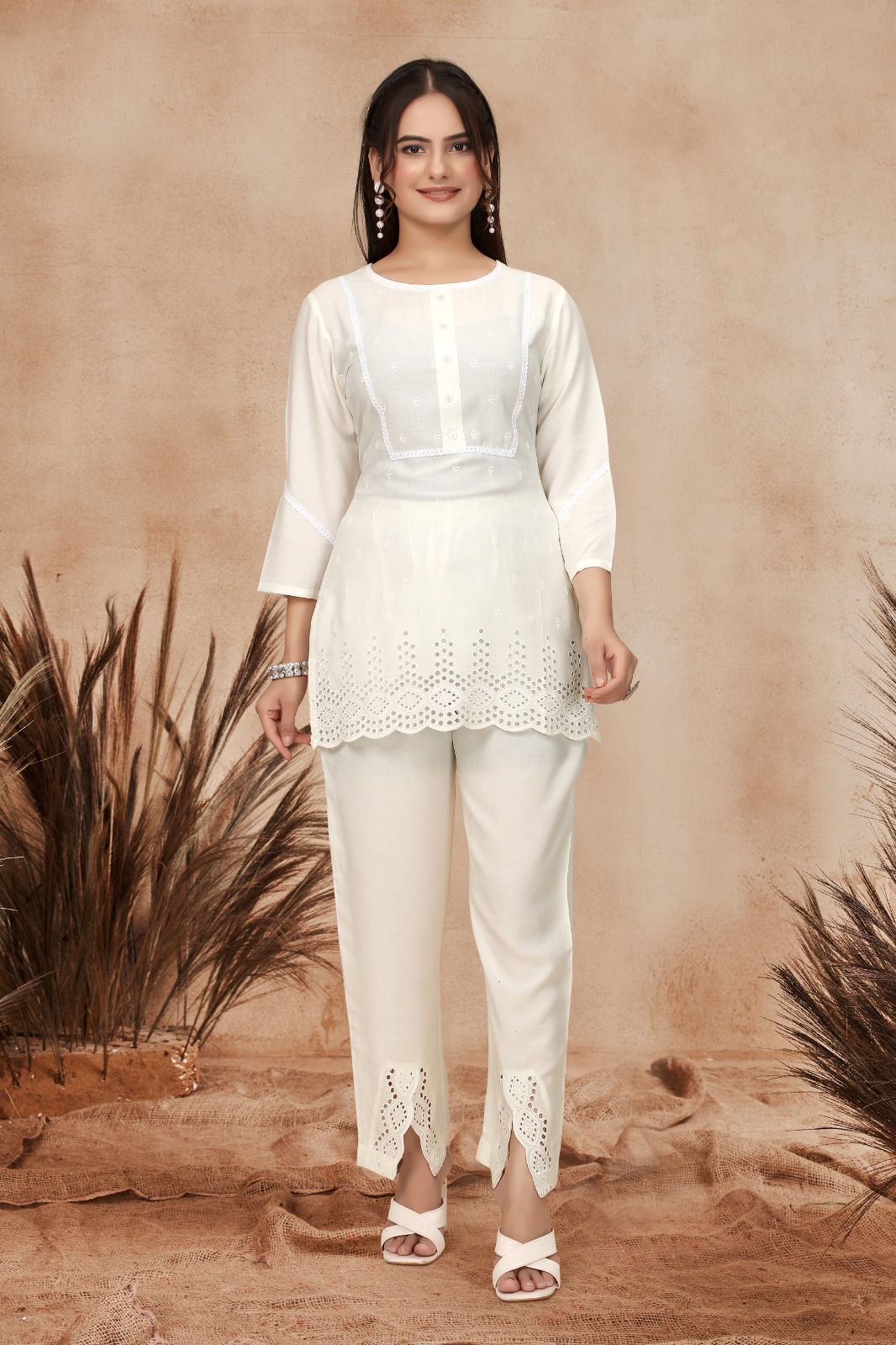 Viscose Rayon Co-ord Set with Shiffli Work & Lace